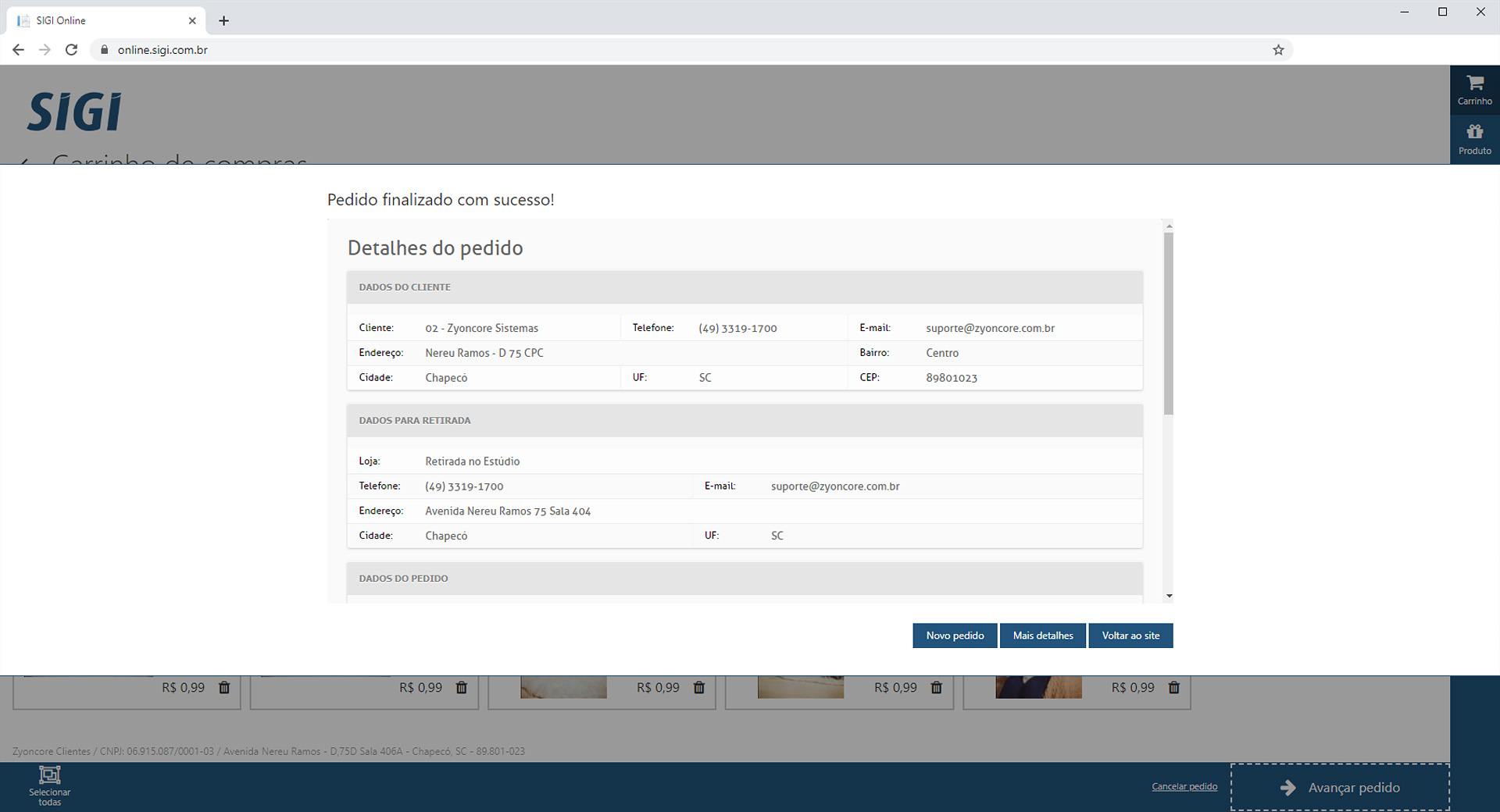 O sistema SIGI ON-LINE é um software para o envio de imagens digitais pelo site para revelação / Impressão.